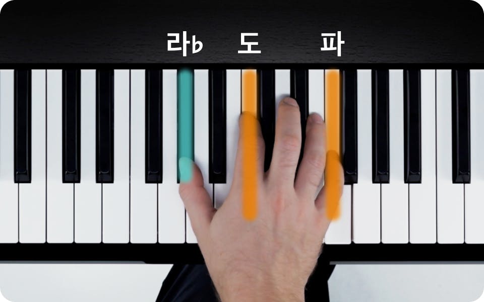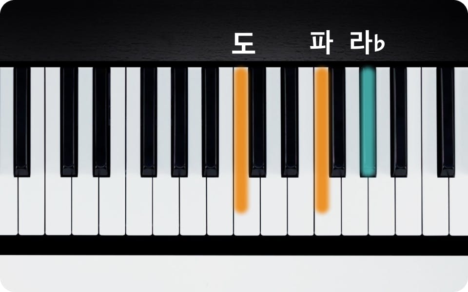 F 마이너 코드는 근음 (파), 단3도 (라♭), 그리고 완전5도 (도)로 이루어진 3화음입니다.