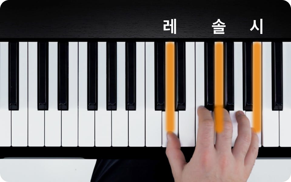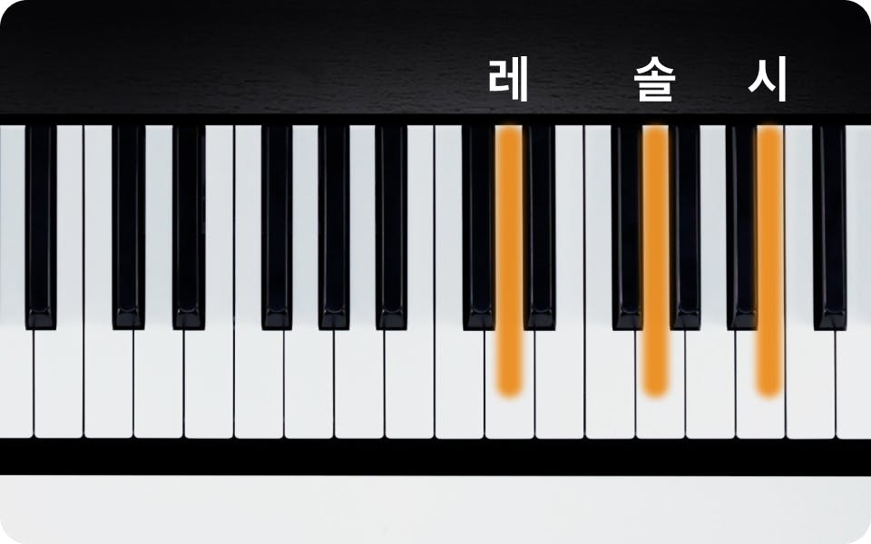 G 메이저 코드는 근음 (솔), 장3도 (시), 그리고 완전5도 (레)로 이루어진 3화음입니다.