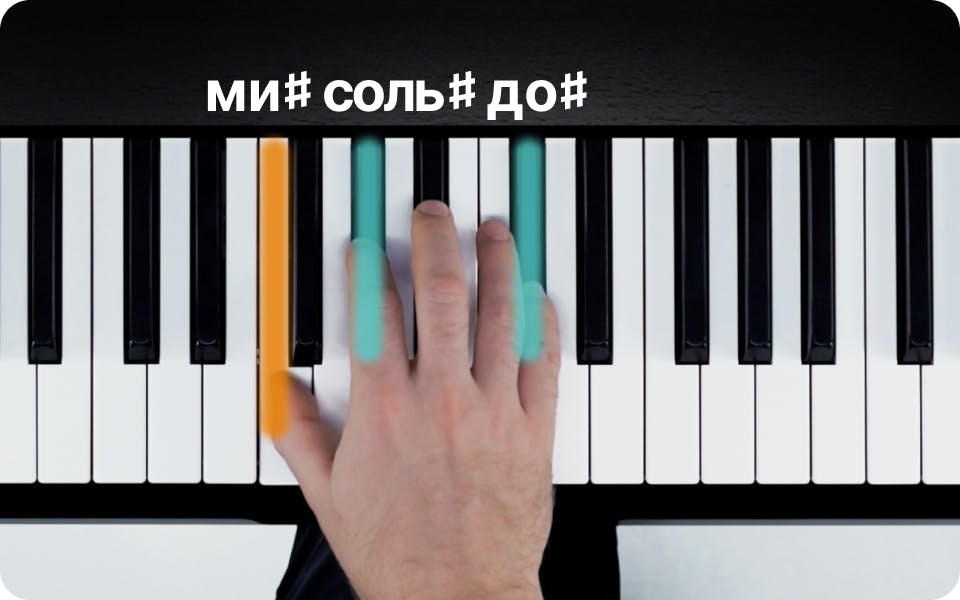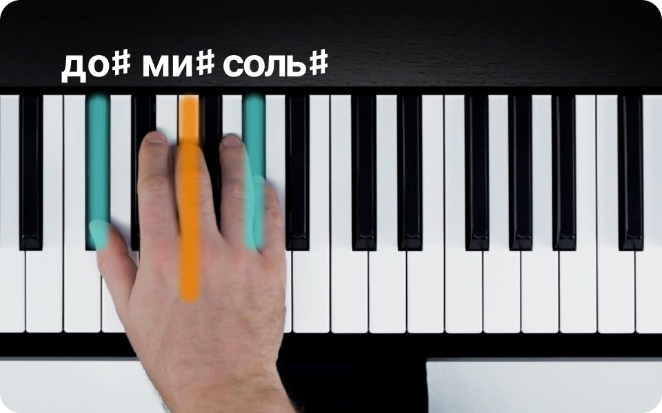 Чтобы сыграть до♯ мажор, вам понадобятся ноты до♯, ми♯ и соль♯. Постановка пальцев правой руки будет следующей: