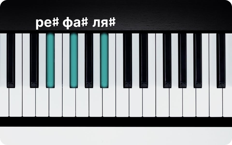 Аккорд Ре♯ мажор представляет собой трезвучие из основного тона Ре♯, большой терции (Фа♯) и чистой квинты (Ля♯).